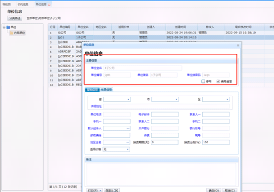 启用机构信息的账套为总部账套,子账套的信息需要在机构设置中添加,添加后就会默认创建一个新账套并且在基本信息——单位信息——内部单位中会默认添加不允许修改主要信息。