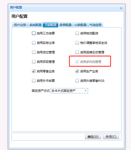 系统维护——系统管理——用户配置——功能配置——启用多机构管理